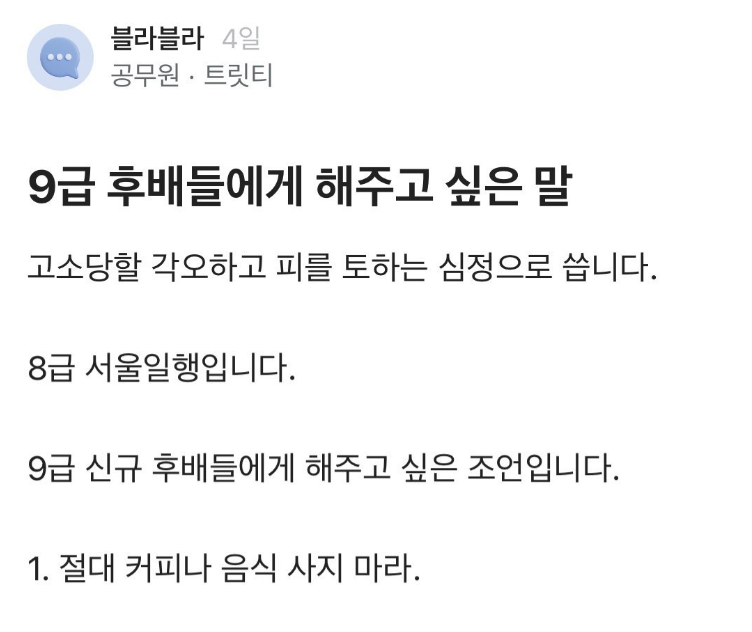 ✍️ 후배들한테 조언하는 블라 공무원