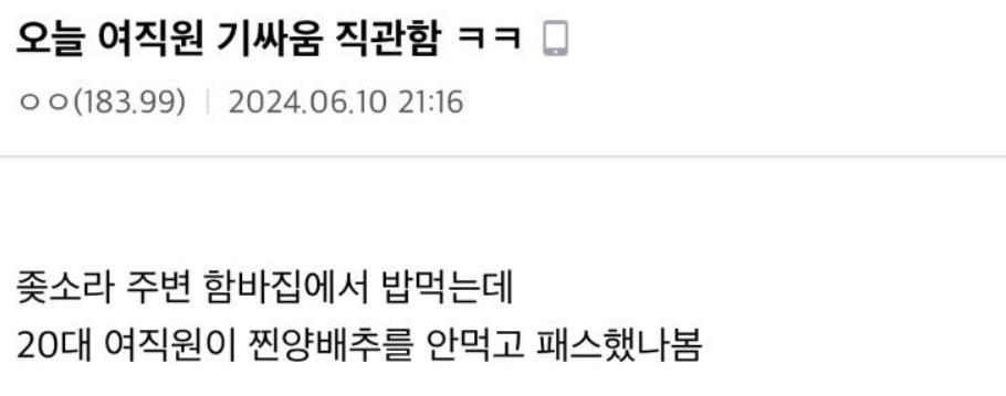 ✍️ 오늘 여직원들 기ㅆ움 직관함 ㅋㅋㅋ