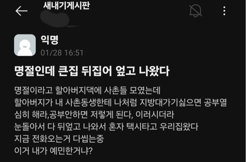 ✍️ 명절인데 큰집 뒤엎고 나왔다