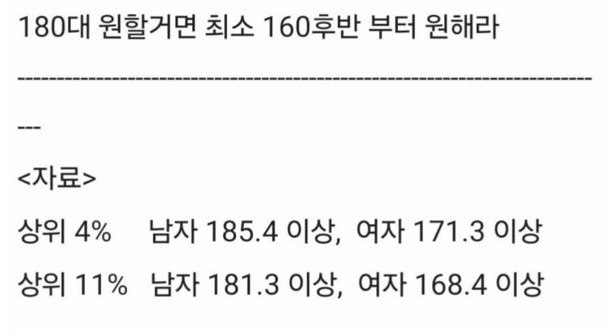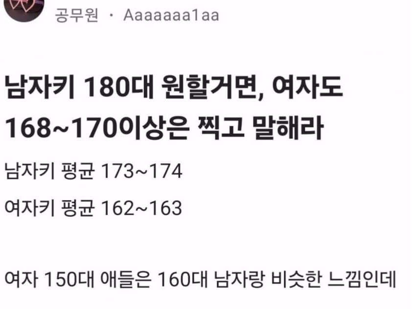✍️ 180대 남자 원할거면 여자도 168~170은 찍으라는 블라남