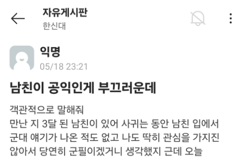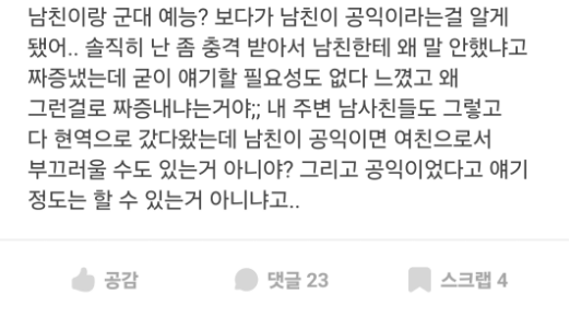 ✍️ 공익 남친이 부끄럽다는 여자친구