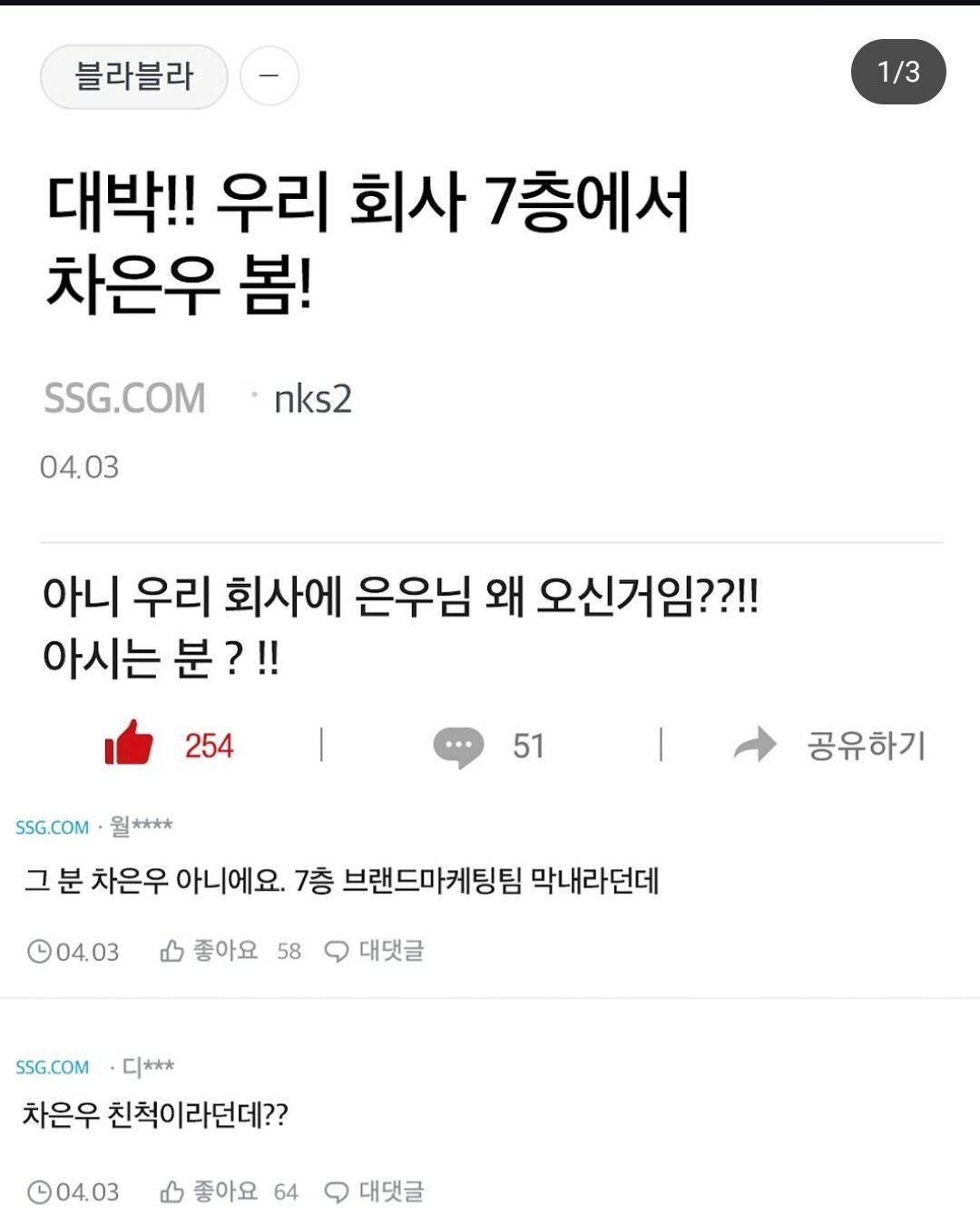 ✍️ 블라인드에서 핫한 차은우 닮은 꼴