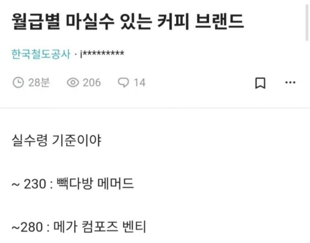 ✍️ 월급 실수령 기준 마실 수 있는 커피 브랜드