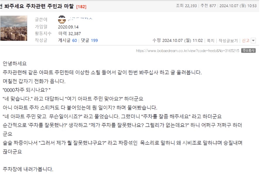 ✍️ 주차 지적을 받은 보배아재
