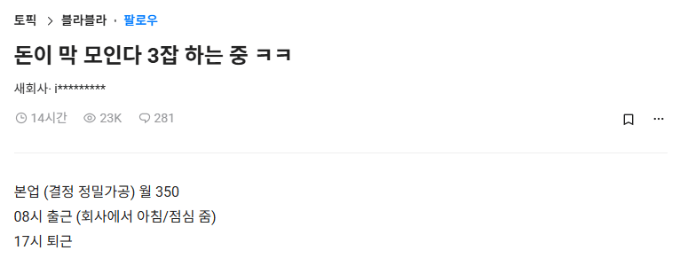 ✍️ 한달에 3잡 하면서 545만원 번다는 29살 청년