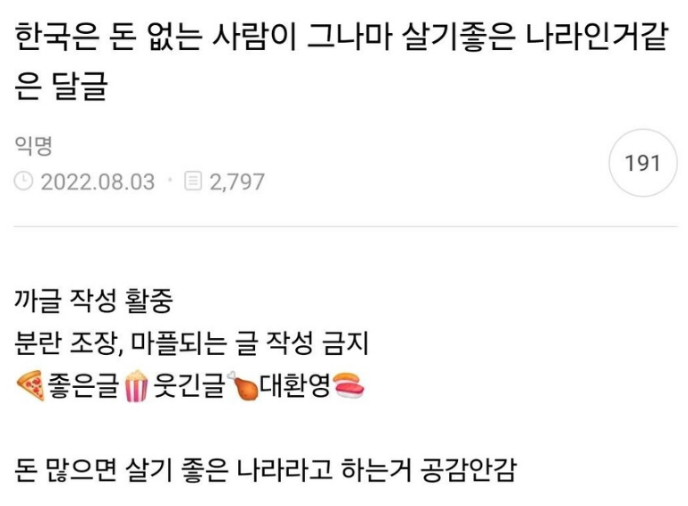 ✍️ 한국은 돈없는 사람이 살기좋은 나라임