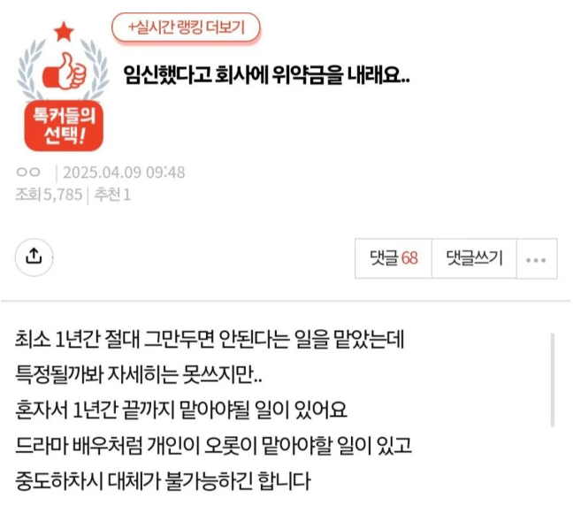 ✍️ 임ㅅ했다고 회사에서 위약금을 내래요..