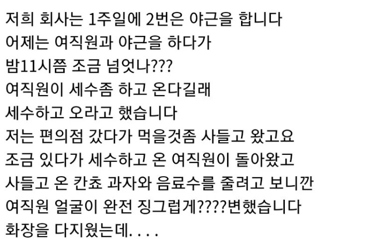 ✍️ 여직원과 야근하다 충격받은 남자