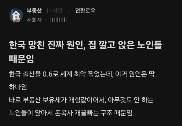 ✍️ 한국 망친 진짜 원인은 집 깔고 앉은 노인들 때문이라는 블라인드
