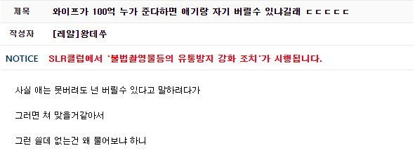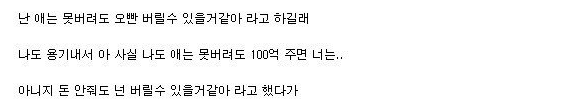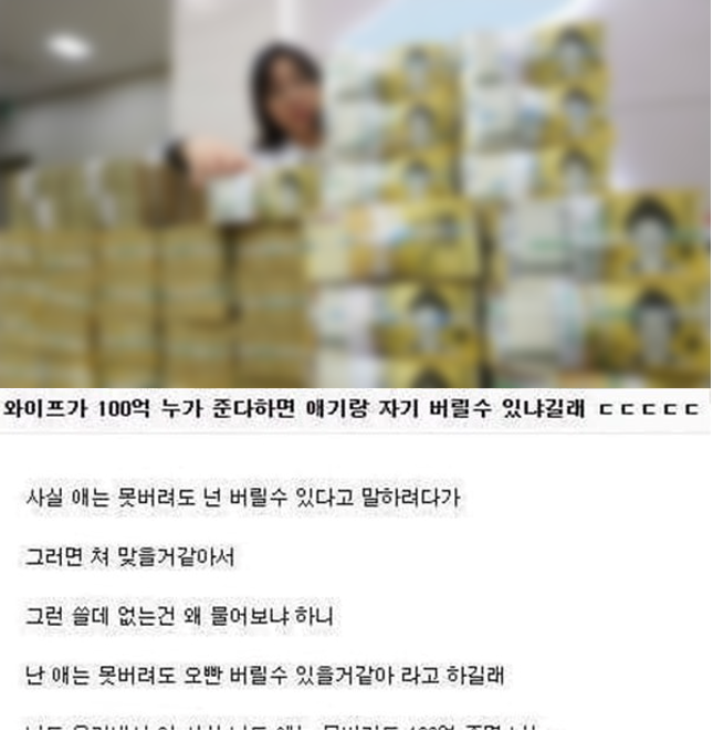 ✍️ 와이프가 100억 누가 준다하면 애기랑 자기 버릴 수 있냐길래